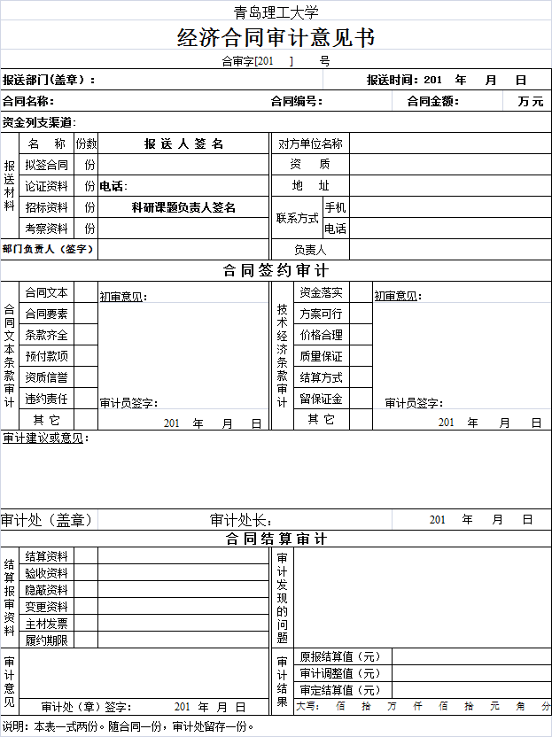 (一)合同签约审计。签约部门将拟签经济合同报yl88858永利官网审计;yl88858永利官网在《经济合同审计意见书》(格式附后)中提出合同签约审计建议;签约部门据以修改完善,加盖学校公章或合同专用章,正式签订。